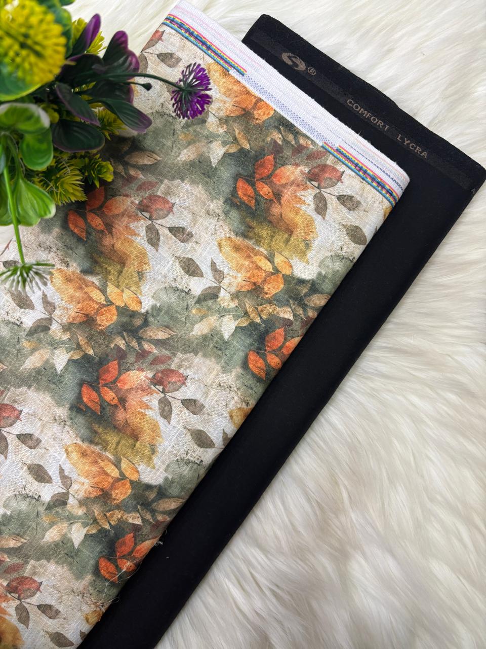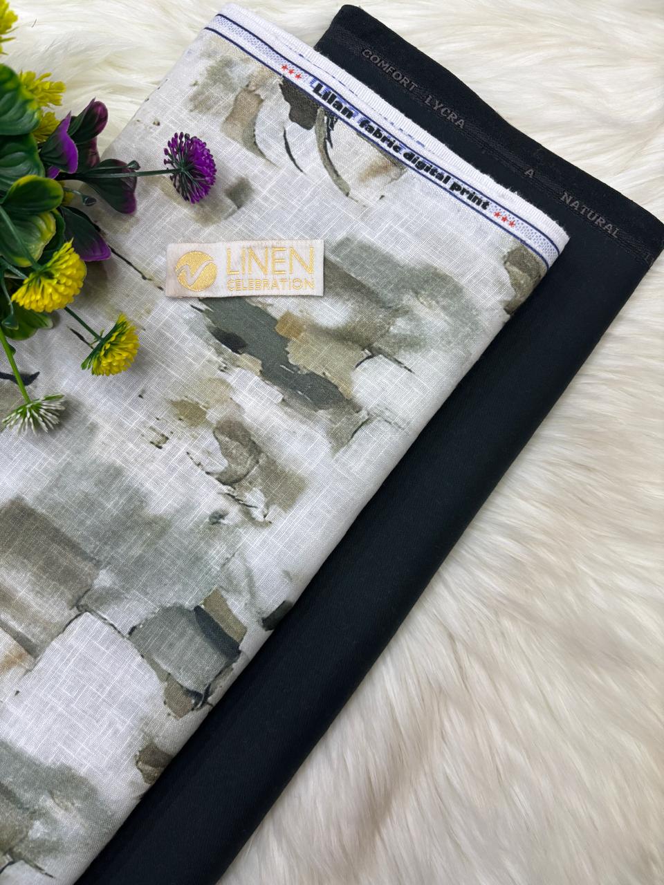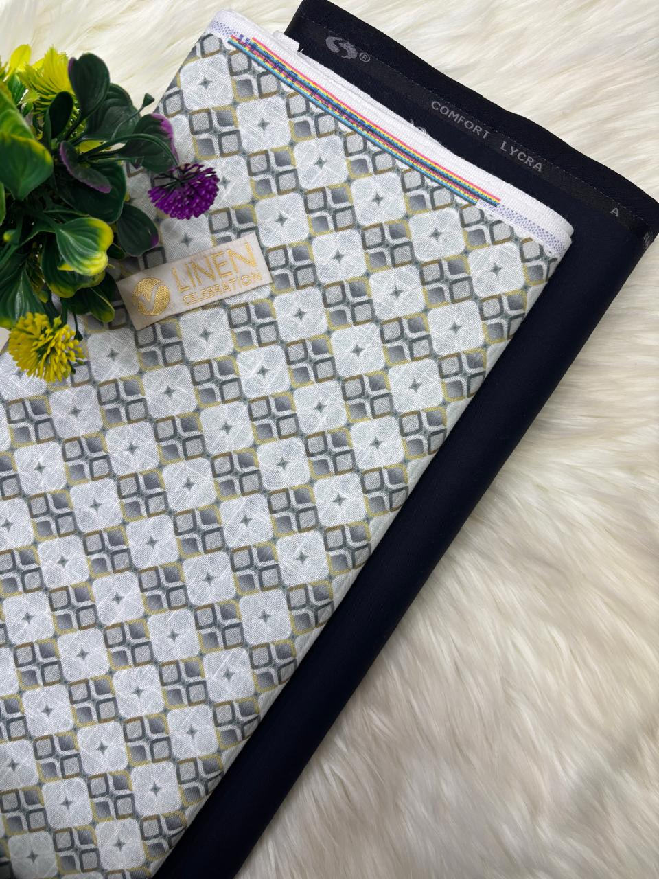 SHIRT- COTTON LINEN PRINTED, PANT-TERRY COTTON STRETCHABLE FORMAL STYLE PANT