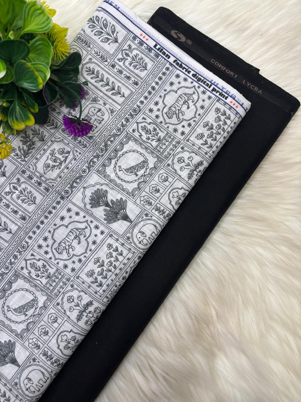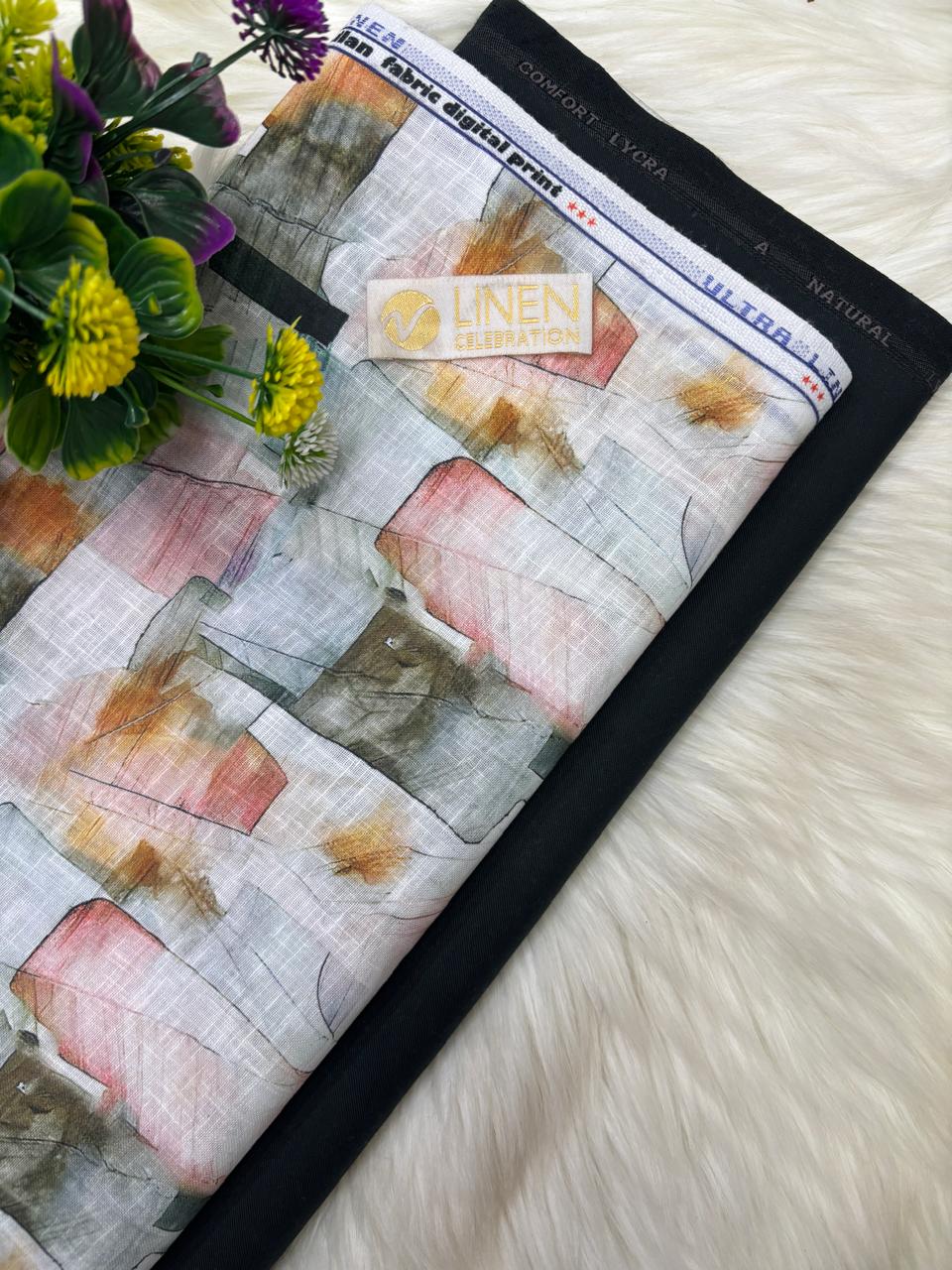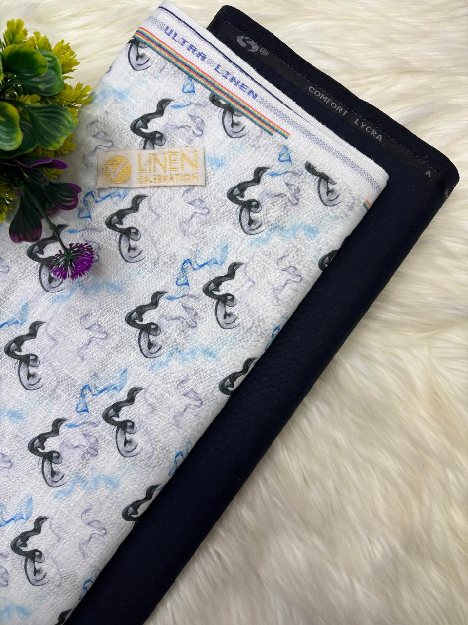 SHIRT- COTTON LINEN PRINTED, PANT-TERRY COTTON STRETCHABLE FORMAL STYLE PANT